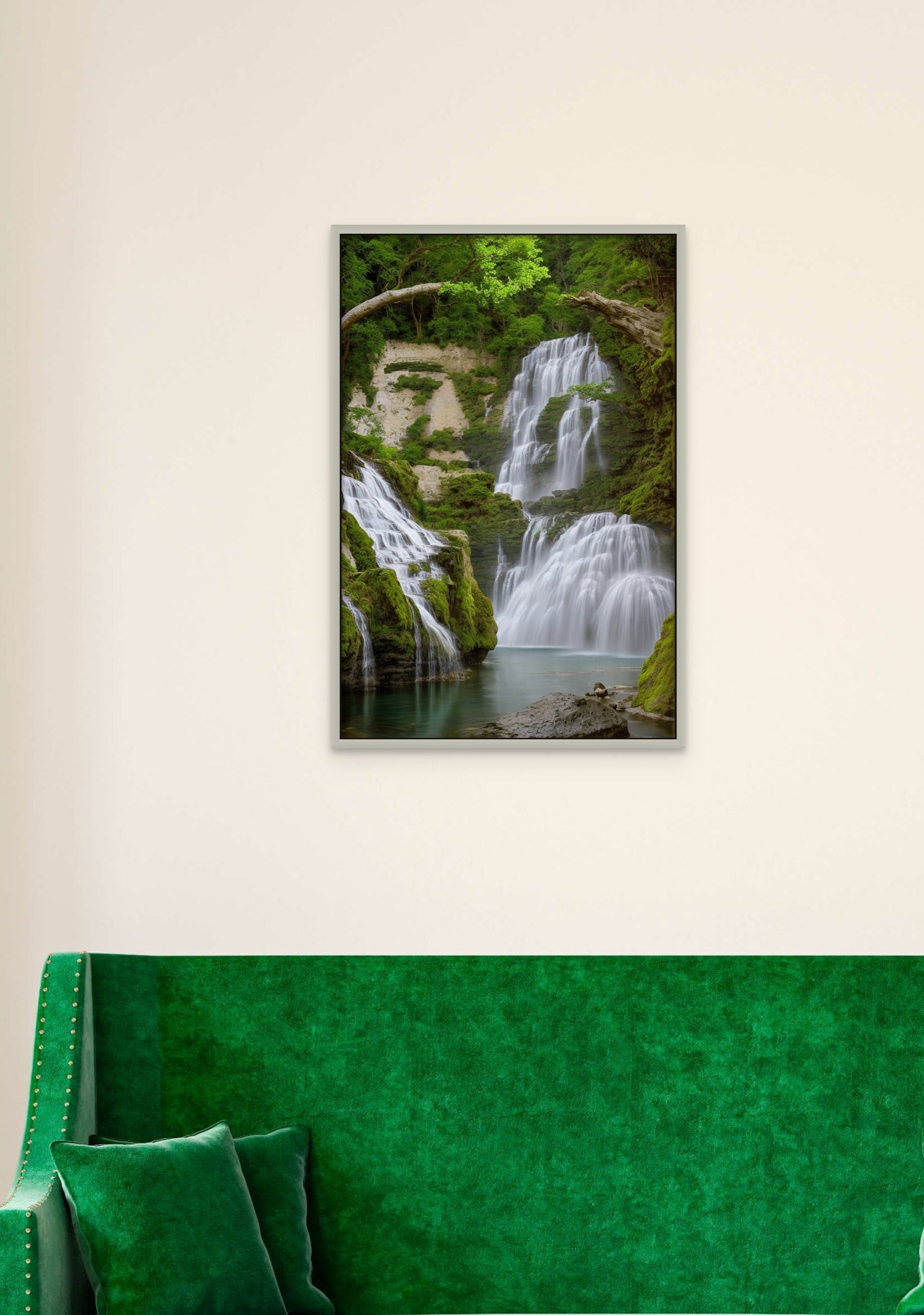Immerse a treasured moment in the majesty of cascading waterfalls with our Wonderfalls Illusion Print. Your photo will be transformed into a breathtaking scene, where powerful waterfalls blend seamlessly with your cherished memories. A captivating addition to any space.